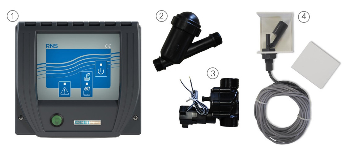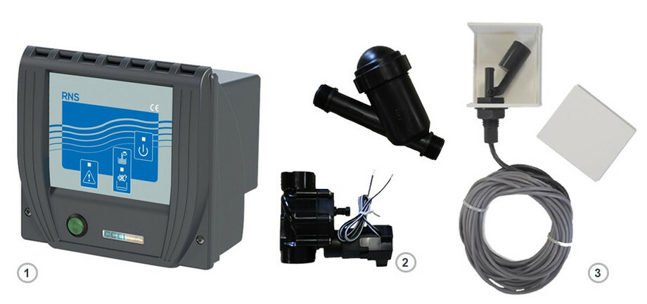 Design, ergonomique et facile à installer, le régulateur RNS-1 est équipé de témoins lumineux, d'une sécurité manque d'eau et d'un mini flotteur.