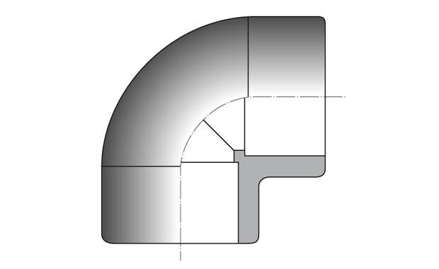 Raccord coudé 90°, femelle/femelle à coller. Pression PN16 bars, existe en 4 diamètres (Ø32 - Ø50 - Ø63 - Ø75)