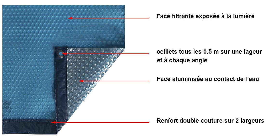 - Cette couverture isotherme n'est pas conforme à la norme NF P90-308. Elle ne sécurise donc pas votre piscine contre les accidents domestiques.