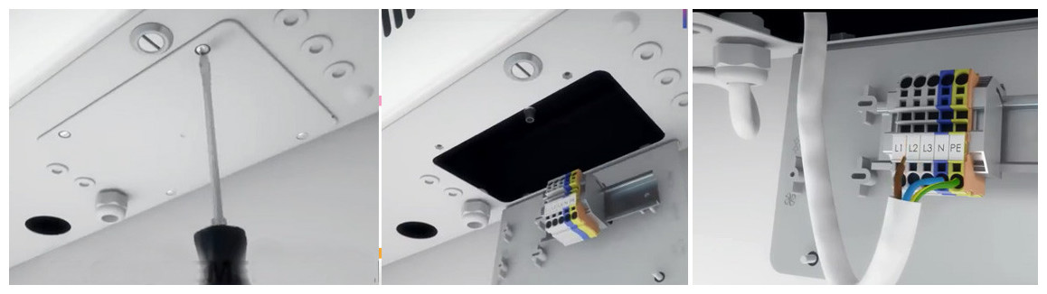 - 230 V pour vanne à eau, ventilateur d’extraction et pompe/chaudière
