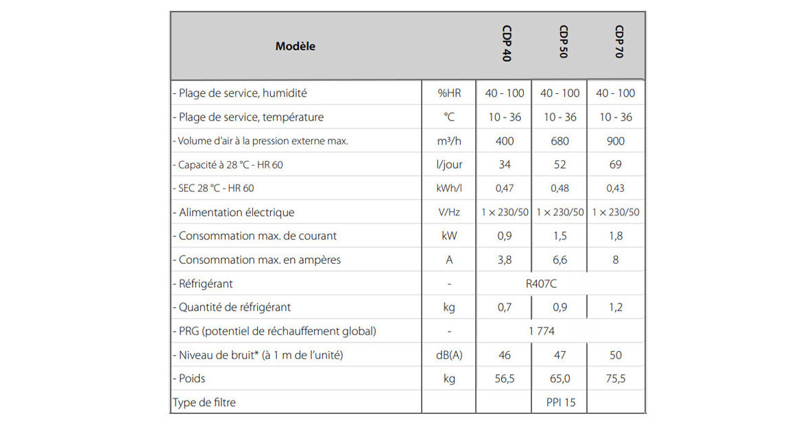 Les déshumidificateurs CDP conviennent aux :