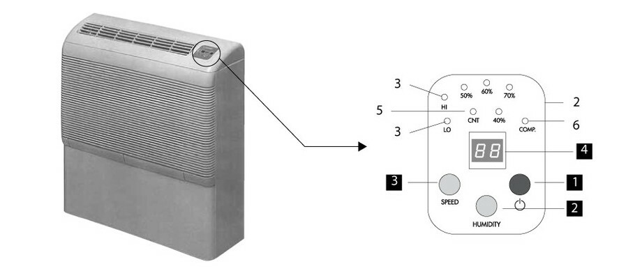 Le déshumidificateur contrôle l'humidité relative de la pièce et permet de conserver un taux de confort.