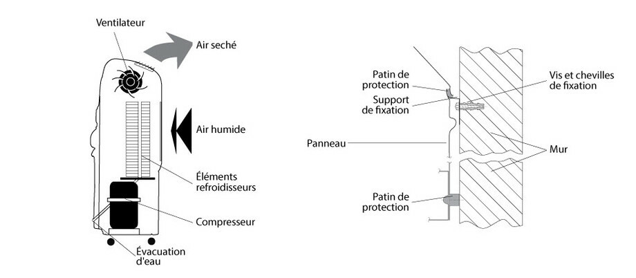 L'humidité superflue est captée par l'appareil pour y être condensée et passer dans les éléments refroidisseurs.