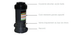 Constitué d'une cuve résistante qui peut contenir jusqu'à 4 kg de galets de chlore.