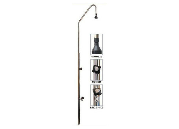 Douche piscine inox - 1 pommeau, 1 robinet et 1 rince-pieds