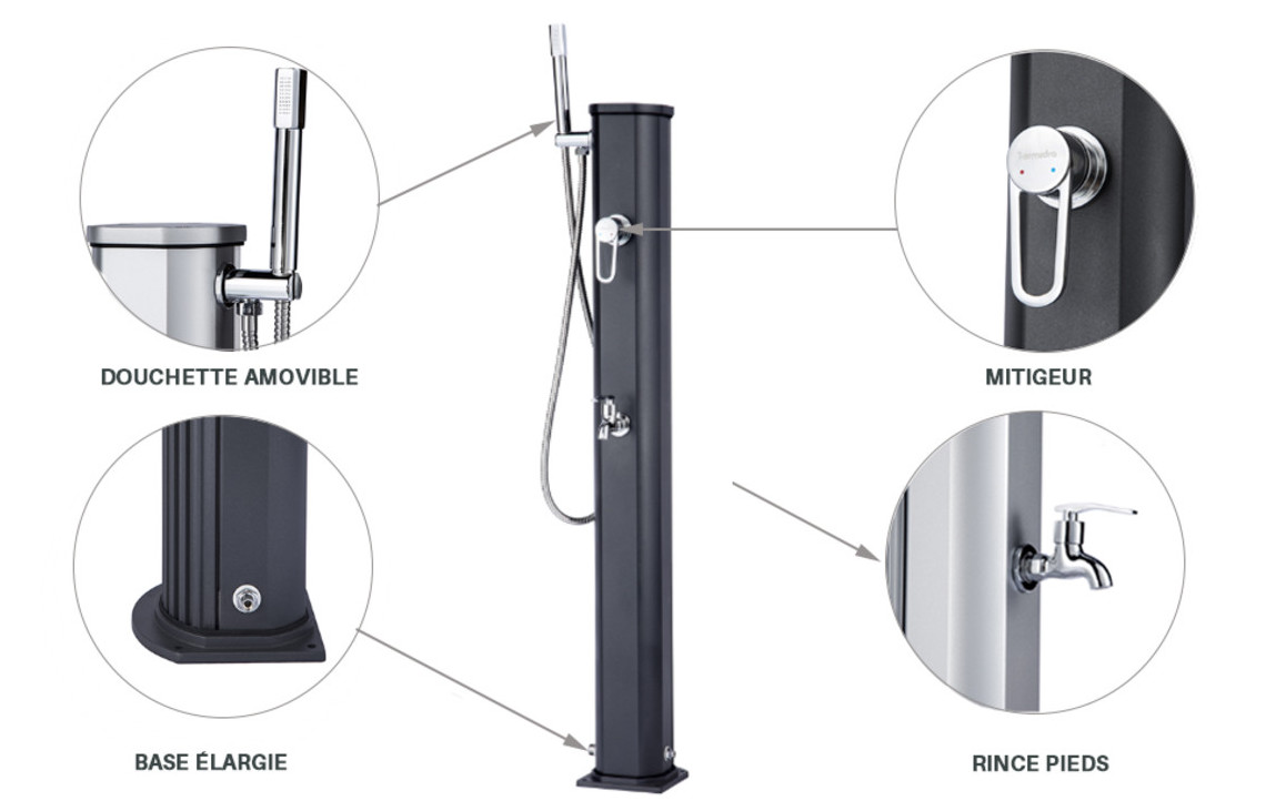 NB : *La douche So Jolly est en aucun cas en inox, c'est seulement le coloris. La douche est en aluminium.