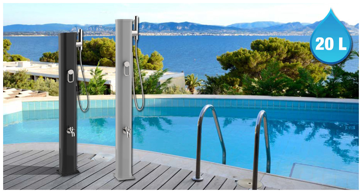 Accessoire incontournable de l'été, discrète et pratique, la douche solaire Jolly Go va vous simplifier la vie ! Son corps en aluminium thermolaqué résistant offre une capacité de 20 L et est disponible en 6 coloris : Anthracite, inox, terracota, vert opaline, vert réséda et bleu capri.