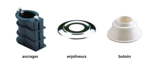 - Ancrages pour liaison équipotentielle fournis. en polypropylène, ils permettent la mise à la terre de l'échelle inox, et d'éviter les risques d'électrocutions pouvant être causés par ce matériau conducteur