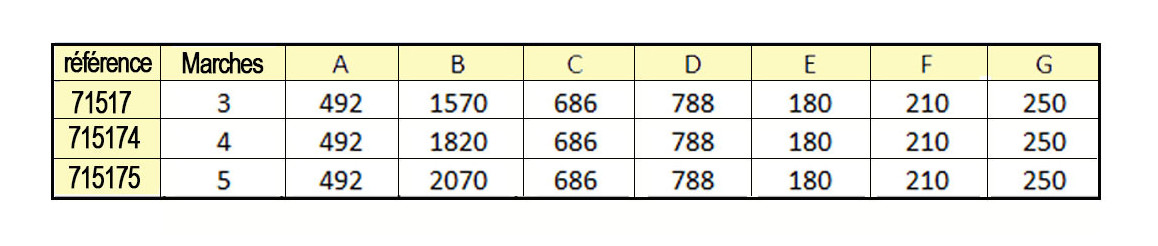- Marches standard : Acier inox AISI-304 et plastique antidérapantes.