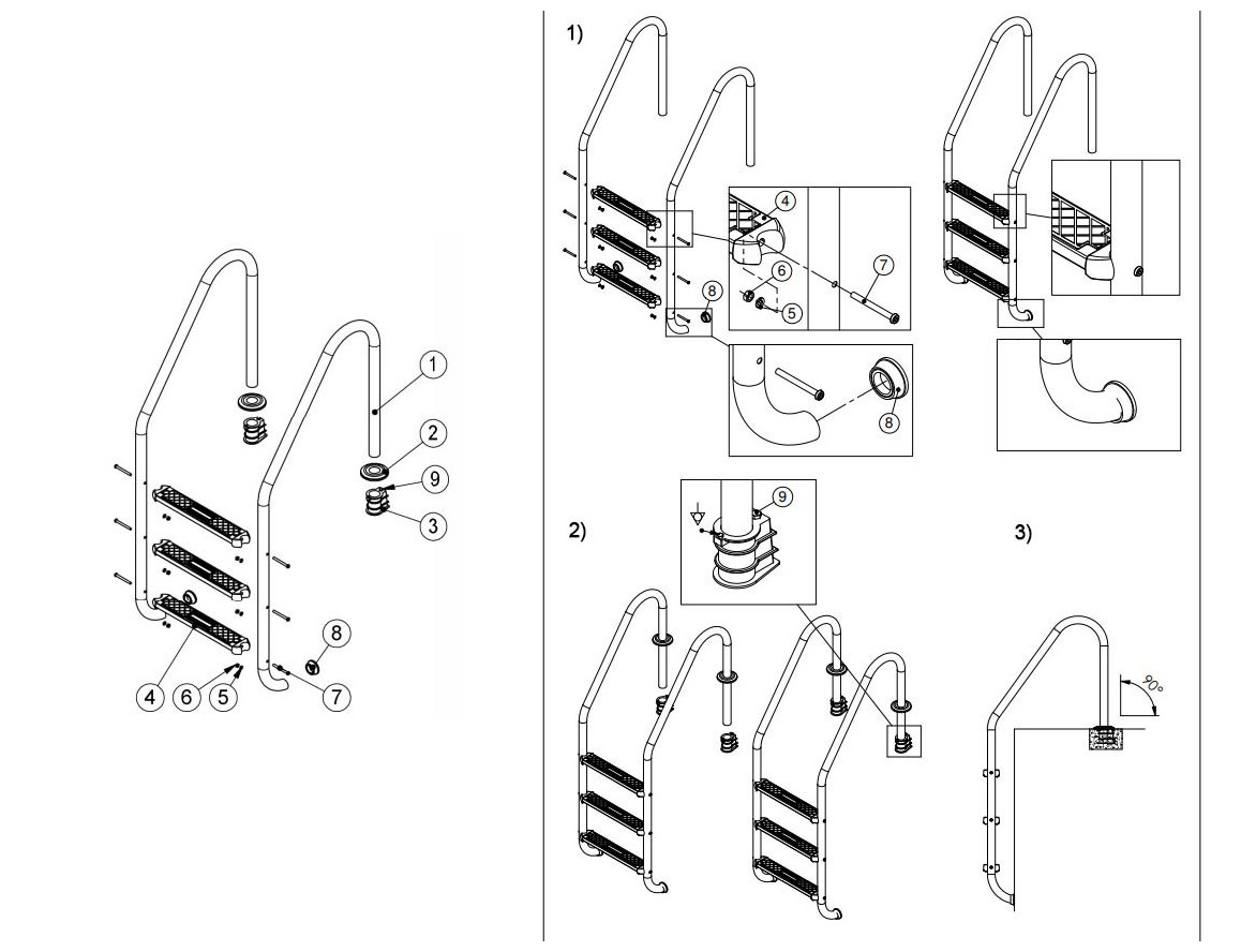 - 2, 3, 4, 5 Marches selon modèle en inox anti-dérapantes + kit fixation et empiècements
