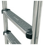 Echelle fabriquée en tubes inox Ø43 mm, trois marches standard et main courante en acier inoxydable AISI-304.