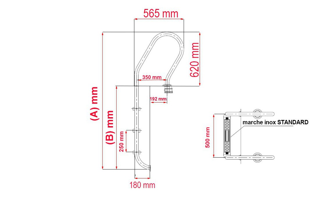L'échelle inox 3 marches est composée des éléments suivants :