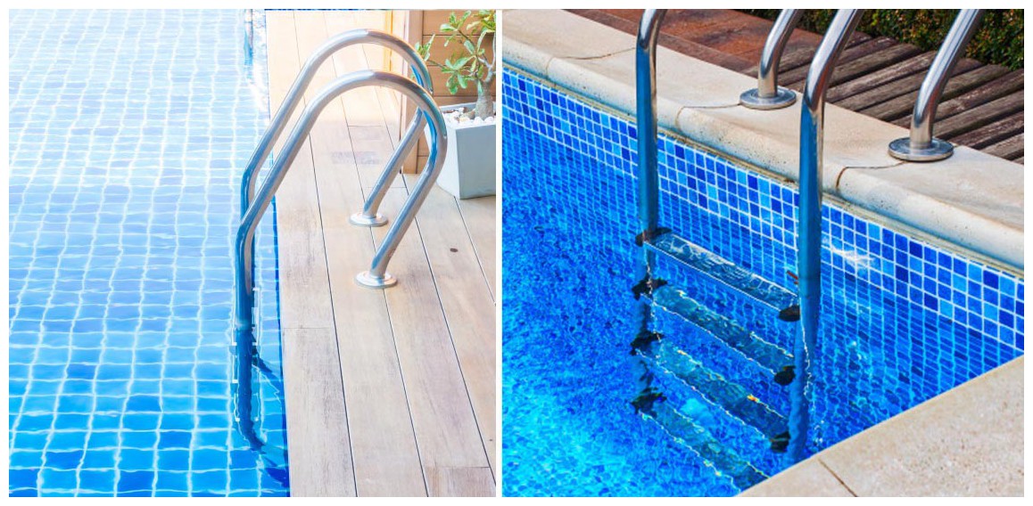 Echelle en inox pour piscines résidentielles enterrées.