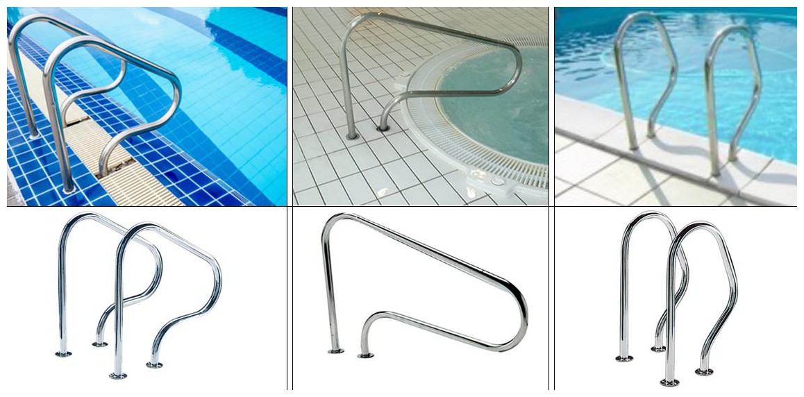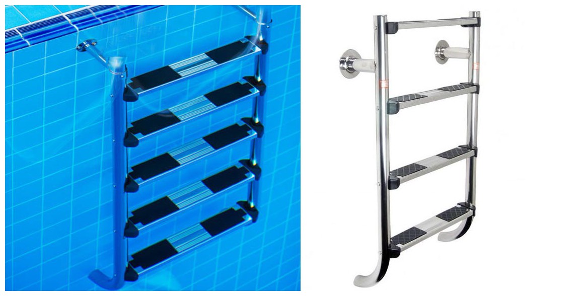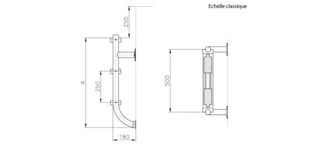 La partie inférieure d'échelle peut être complétée par différentes sorties de bain proposées sur notre site. (images ci-dessus)