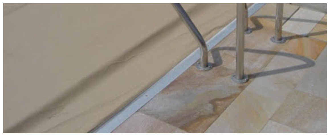 C - Installer les butoirs (7) de la main courante afin de protéger le revêtement du bassin.