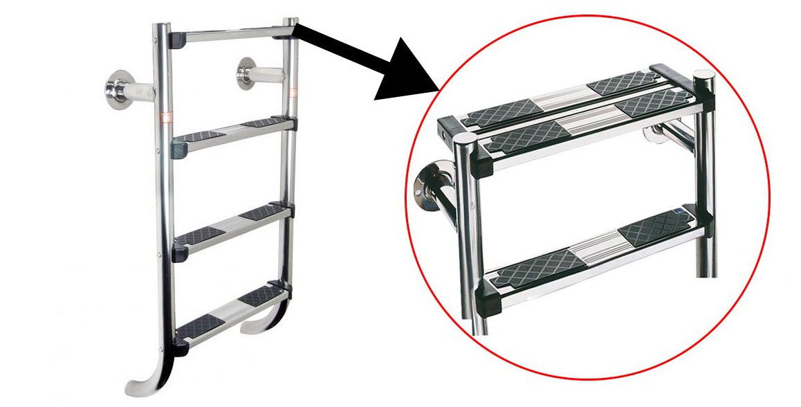 Echelle en inox acier poli AISI-316, largeur 500 mm