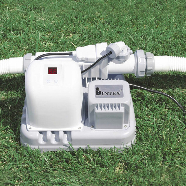 L’électro-stérilisateur INTEX est conçu pour une piscine avec un taux de salinité de 3 g par litre. Son utilisation est très simple : ajouter du sel dans la piscine. L’eau salée circule dans la cellule d’électrolyse et est transformée en hypochlorite de sodium et en hydrogène. L’hypochlorite de sodium détruit les virus, les algues et les bactéries, puis se retransforme en sel dissous, prêt à nouveau à être reconverti en hypochlorite de sodium. Aussi longtemps que la concentration en sel de la piscine n’est pas modifiée (ex : pluie), le processus de stérilisation continue.