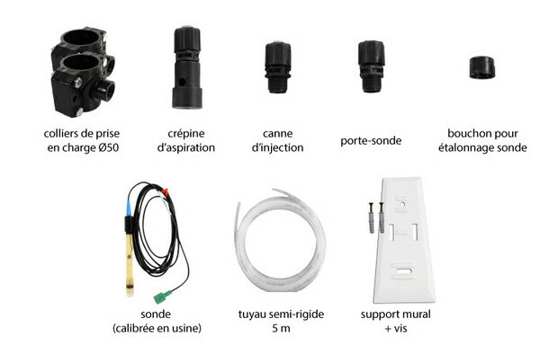 - Voyants d'alerte (pH faible/élevé, surdosage, problème d'injection)