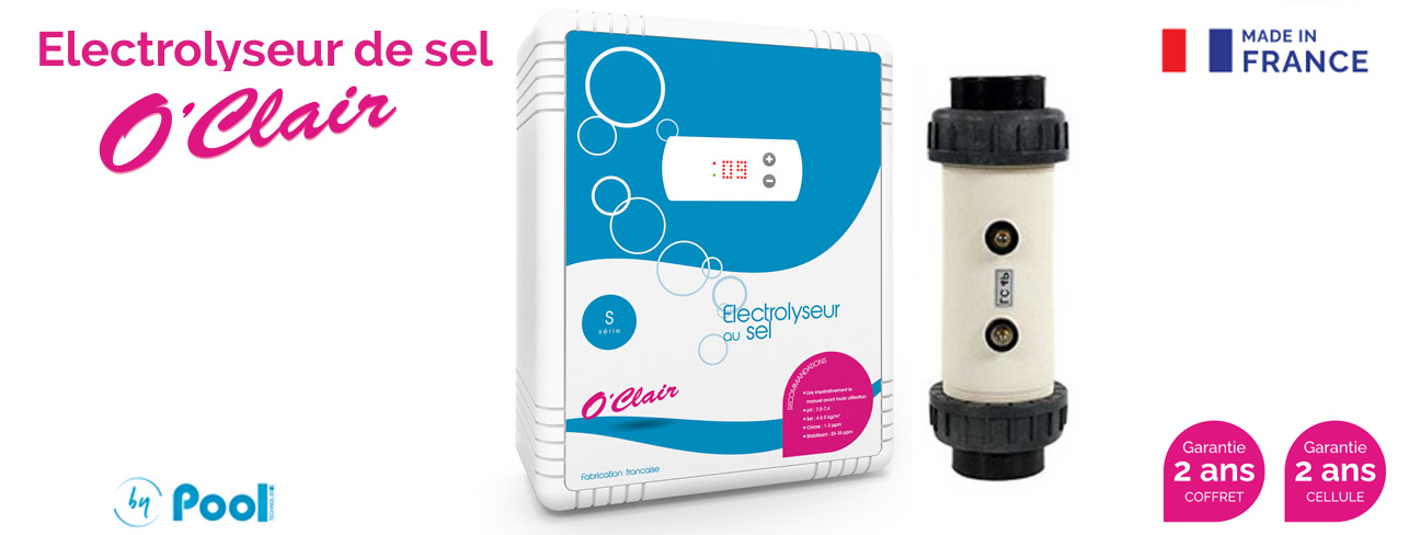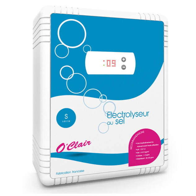 L'électrolyseur au sel O'Clair est une solution complète de traitement automatique de l'eau de piscine, adaptée aux bassins de 30 à 120 m³ selon le modèle.
