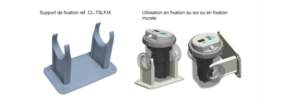 - Un support de fixation au sol ou mural est fourni pour cet effet