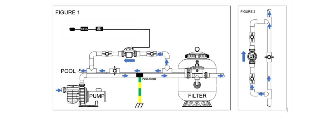 - Le bloc d'alimentation de l'électrolyseur au sel doit être installé sur une source d'alimentation indépendante et équipé d'une protection différentielle 30mA.