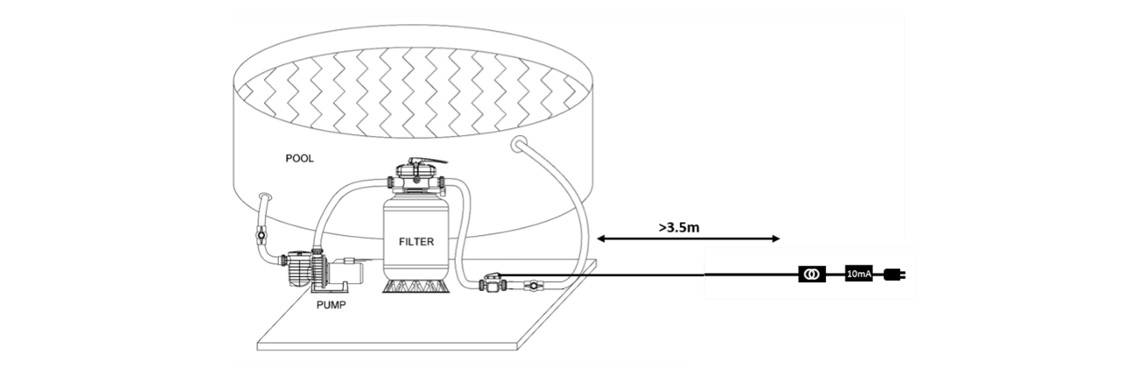 - Il doit être à l'abri de la pluie et situé à plus de 3,5 m du bassin.