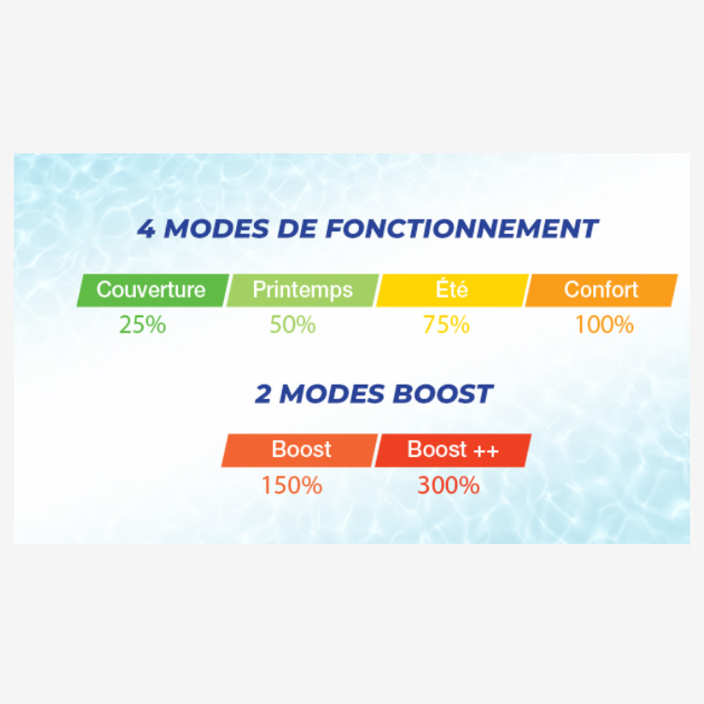 - En période de basses températures, le mode Piscine Couverte est suffisant.
