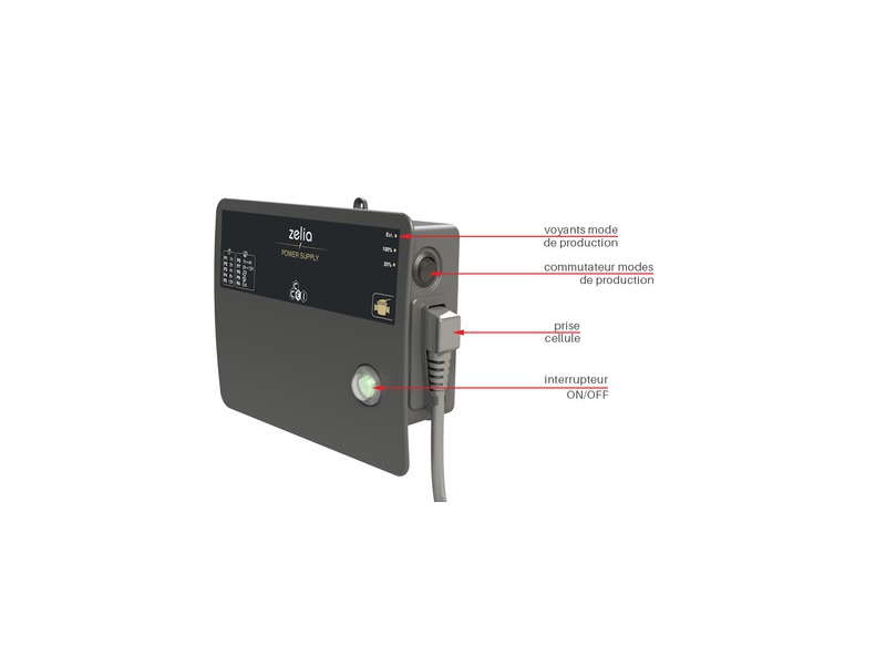 Le coffret de commande et le panneau intégré à la cellule vous permettent d'actionner l'appareil, de choisir la production adaptée en fonction du besoin.