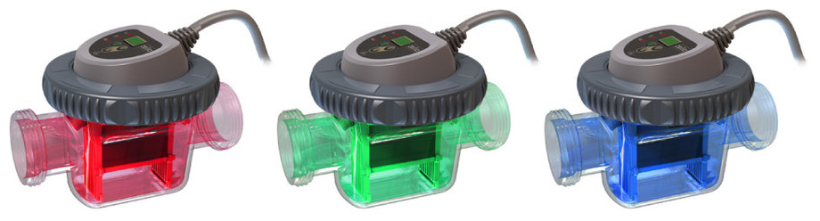 Zelia est un électrolyseur intégrant une lampe LED dans la cellule, dont les couleurs varient en fonction de la température et de la salinité de l'eau.