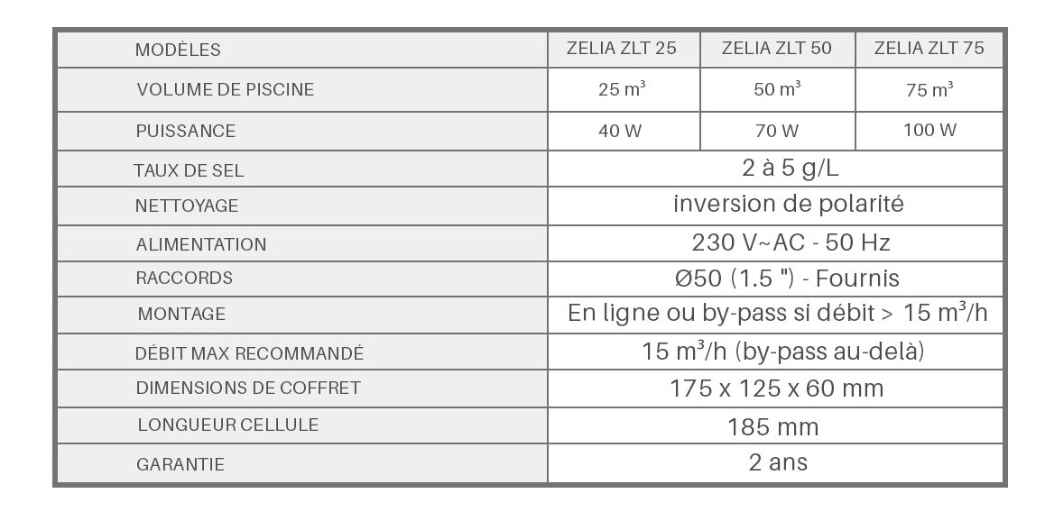 L'électrolyseur au sel Zelia va vous séduire par sa compacité, son innovation et sa facilité tant au niveau de son installation que de sa manipulation. Avec ses 4 modèles, il est l'appareil idéal pour le traitement des piscines jusqu'à 100 m³.