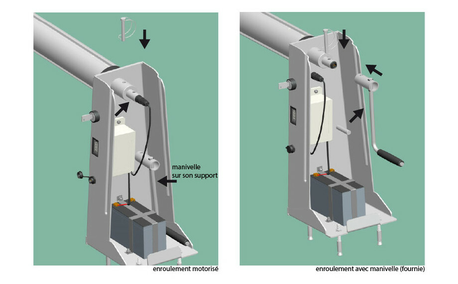 - Enrouleur motorisé pour bâche largeur 4 m maximum axe Ø80