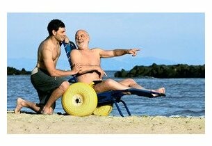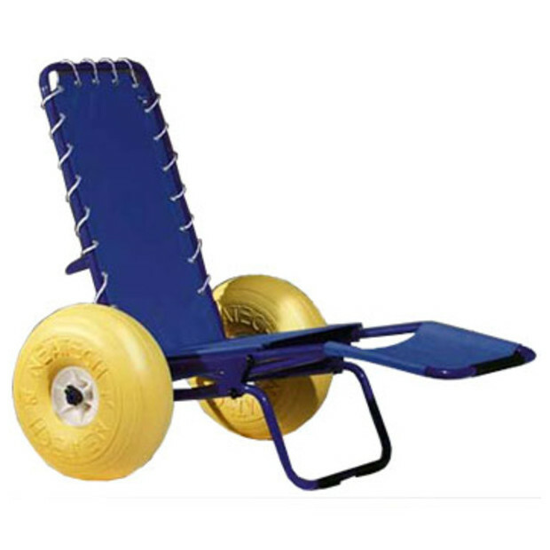 - Les grandes roues : permettent d’accéder plus facilement à la mer. Une fois sortie de l’eau, le fauteuil peut également servir de bain de soleil.