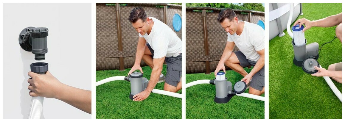 Pour faire en sorte que l’eau de la piscine reste propre, nettoyez la cartouche du filtre tous les jours et changez-la quand c’est nécessaire.