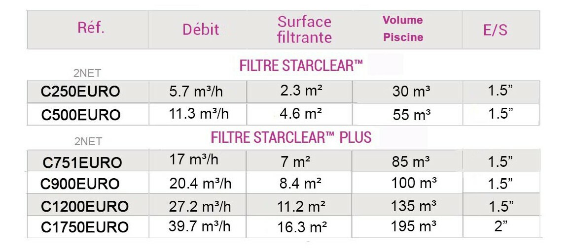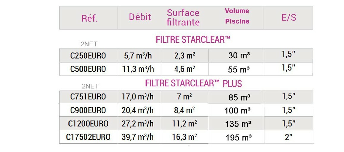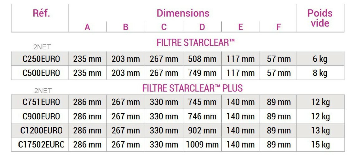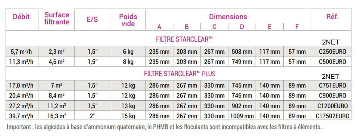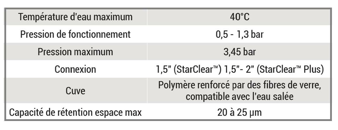 Filtre à cartouche Star Clear - Caractéristiques Générales