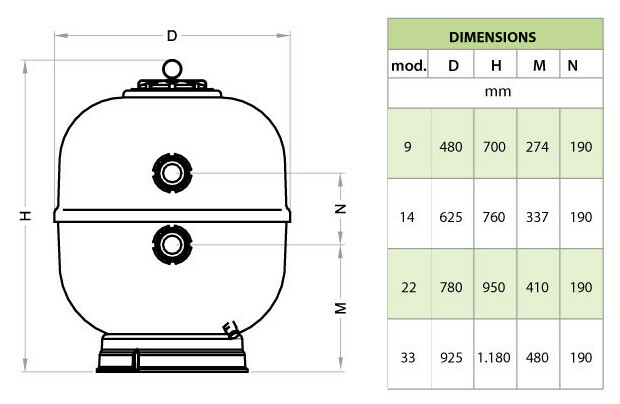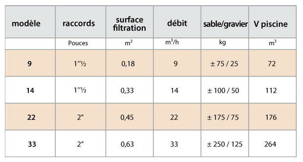 Le filtre piscine Triclair est disponible en 4 modèles : 9m³/h - 14m³/h - 22m³/h - 33m³/h