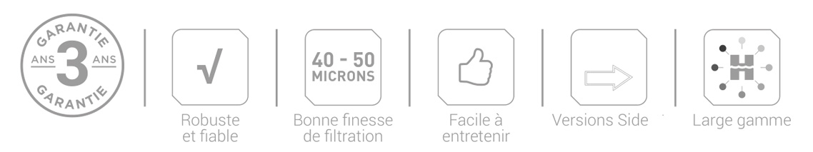 Livré avec une vanne latérale (SIDE), il intègre également un manomètre et un voyant de turbidité pour une surveillance facilitée.
