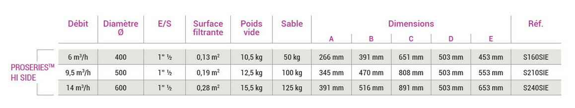 Filtre à sable ProSeries? HI Side - Les Caractéristiques techniques
