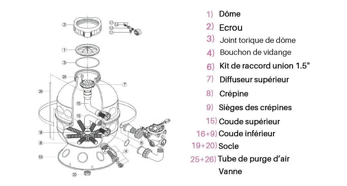 Filtre à sable ProSeries? HI Side - Vue éclatée