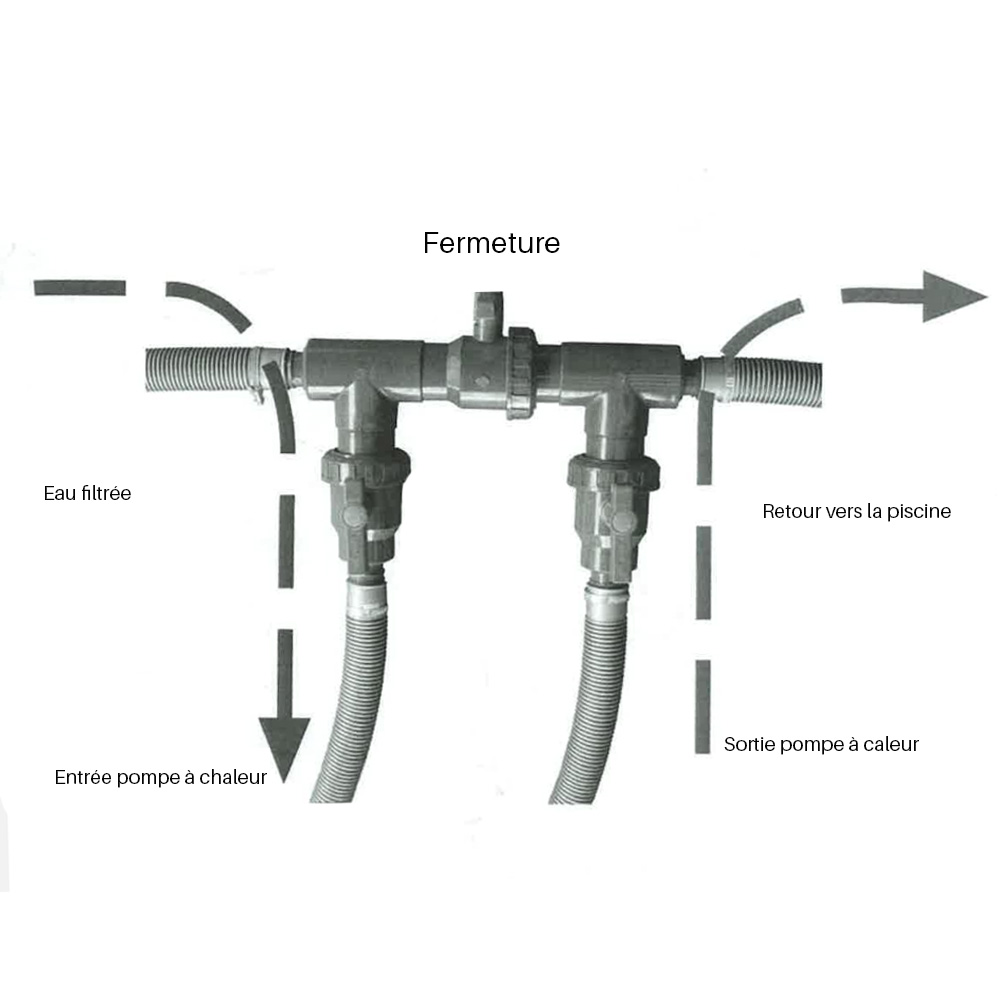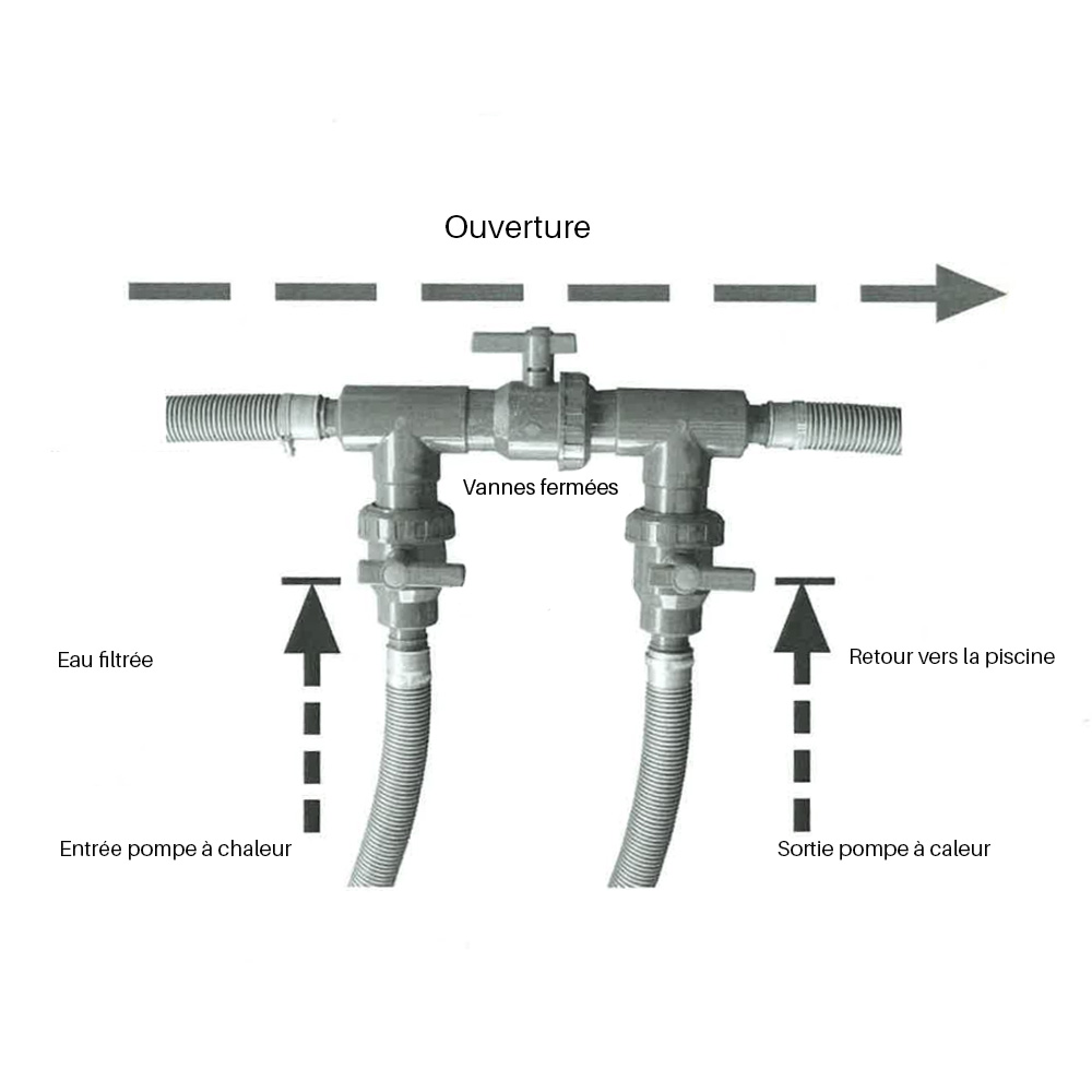 Le kit by-pass permet de connecter des pompes à chaleur ou un électrolyseur au sel au système de filtration de la piscine. Le kit by pass Gre comprend :