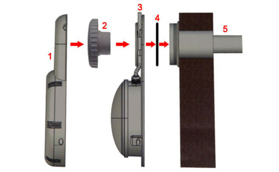 - Revissez la buse de refoulement (2) en serrant fortement afin d'empêcher tout mouvement du support (3) (dans certains cas, vous pouvez coller le joint (4) contre la face arrière du support (3) pour renforcer son maintien en position).