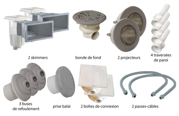 Pièces à sceller coloris gris pour piscine à revêtement liner de dimensions maximales comprises entre 8x4 et 10x5 m.