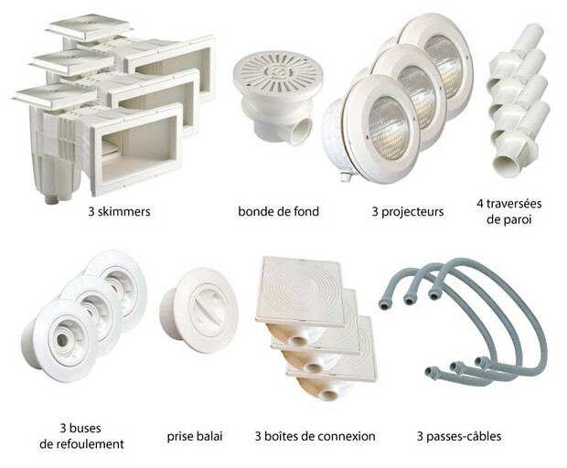 Du skimmer au passe-câble, toutes les pièces fournies vous permettront de mener votre projet de piscine à bien en toute sérénité.