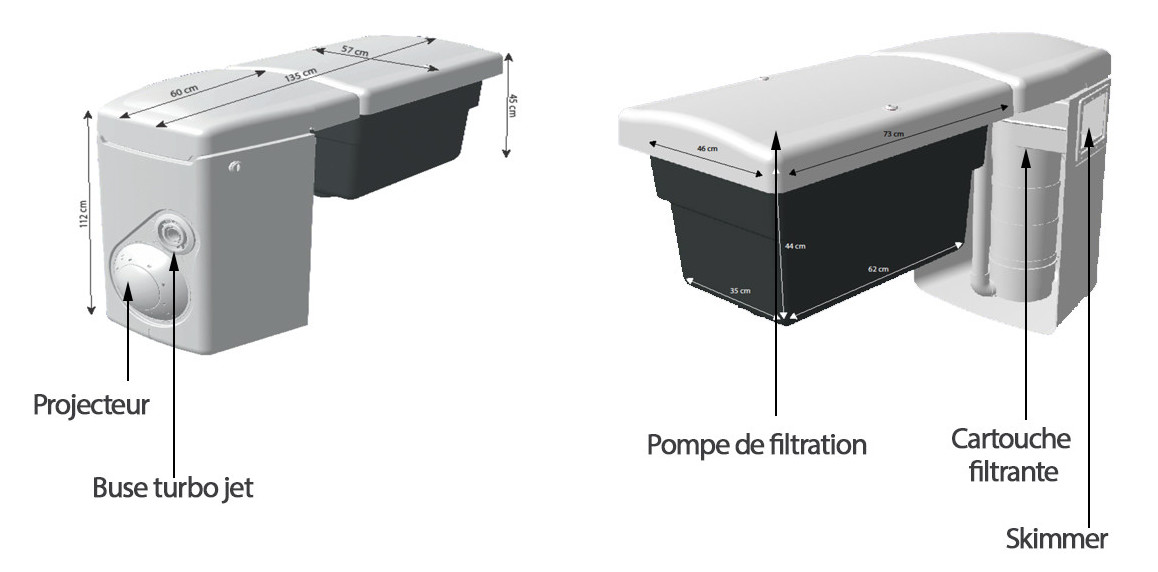 Sa couleur beige clair s'intégrera parfaitement à l'environnement de votre bassin. L'installation et le fonctionnement du bloc sont très simples et l'amorçage de la pompe est automatique.