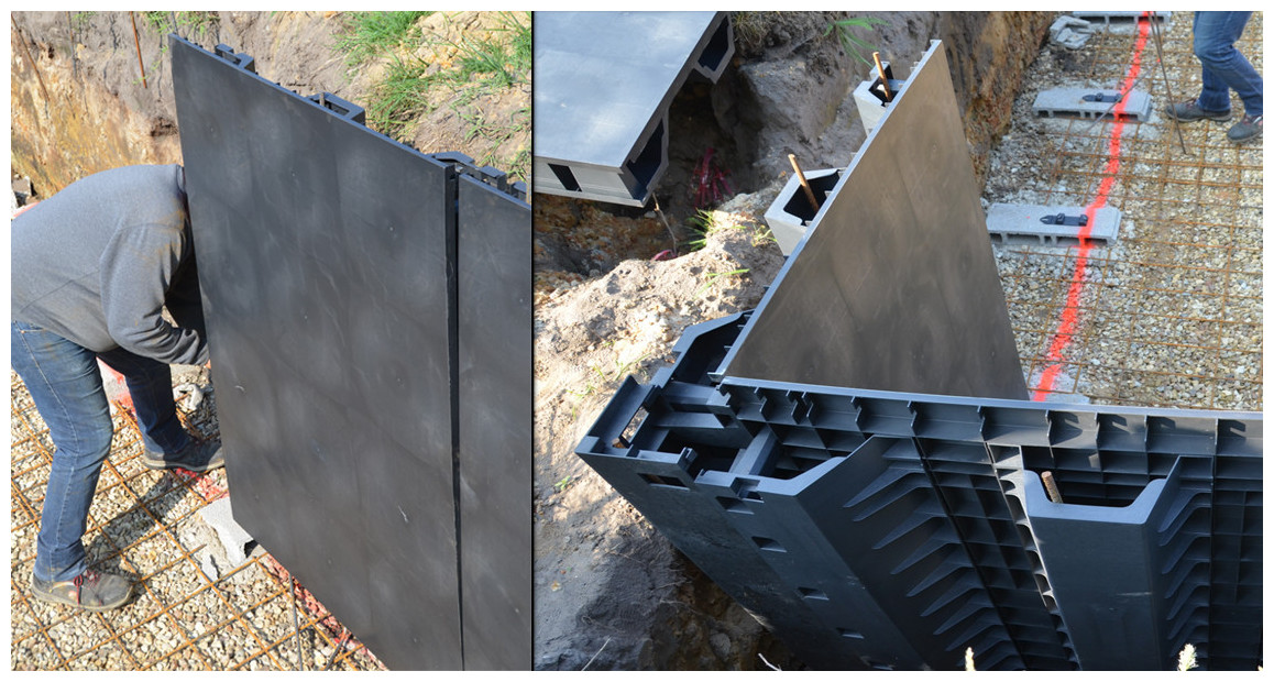 - Les panneaux s'assemblent entre eux sous forme de coffrage.