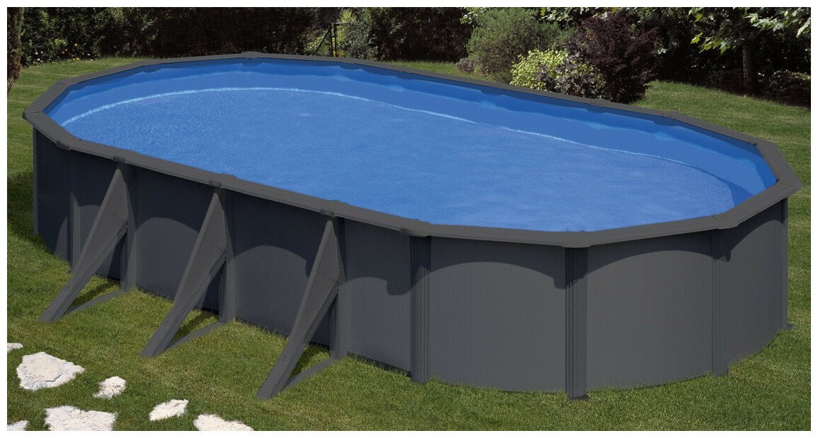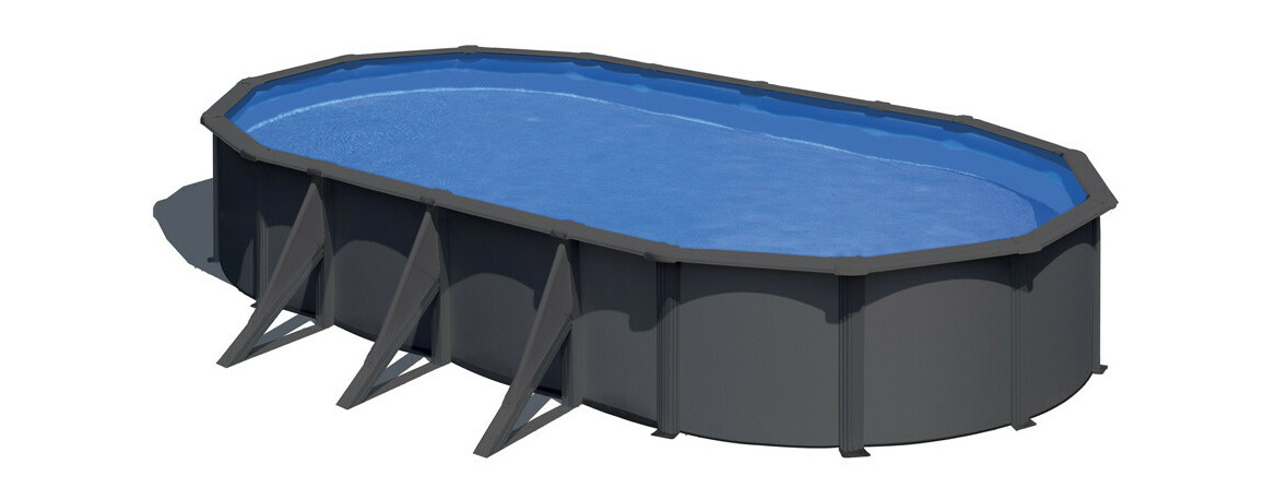 Plongez dans un été rafraîchissant avec la superbe piscine hors-sol ovale Graphite de la marque Gré !