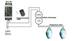 Cet ensemble émetteur/récepteur peut commander jusqu'à 1000W de projecteurs compatibles. Le boîtier se monte en série sur le branchement des lampes (coffret non fourni).