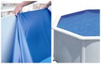 Son épaisseur de 20/100 disponible en 5 dimensions différentes et de couleur bleu s'attache aux parois de la piscine par un système à recouvrement.