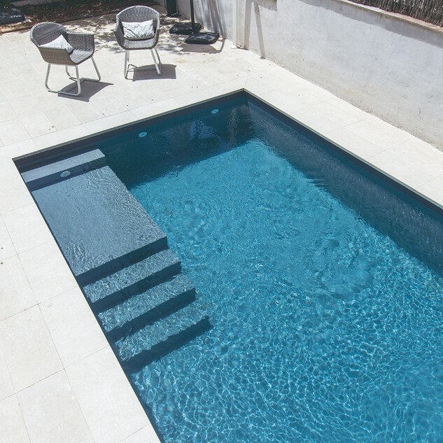 Pour garantir une entrée en toute sécurité dans la piscine, optez pour un revêtement antidérapant sur les marches d'escalier.