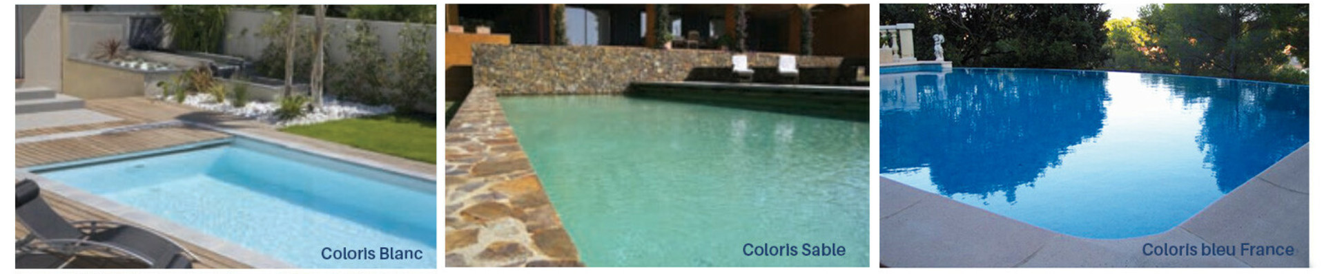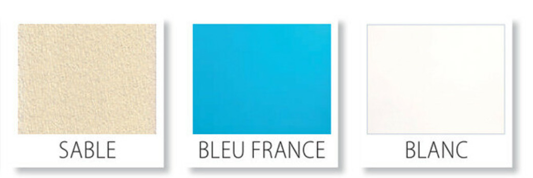 Notre liner sur-mesure 85/100ème est disponible dans un choix de 3 coloris unis classique : bleu France, blanc et sable afin de répondre aux goûts de chacun et déclinés en antidérapants grainés certifiés.