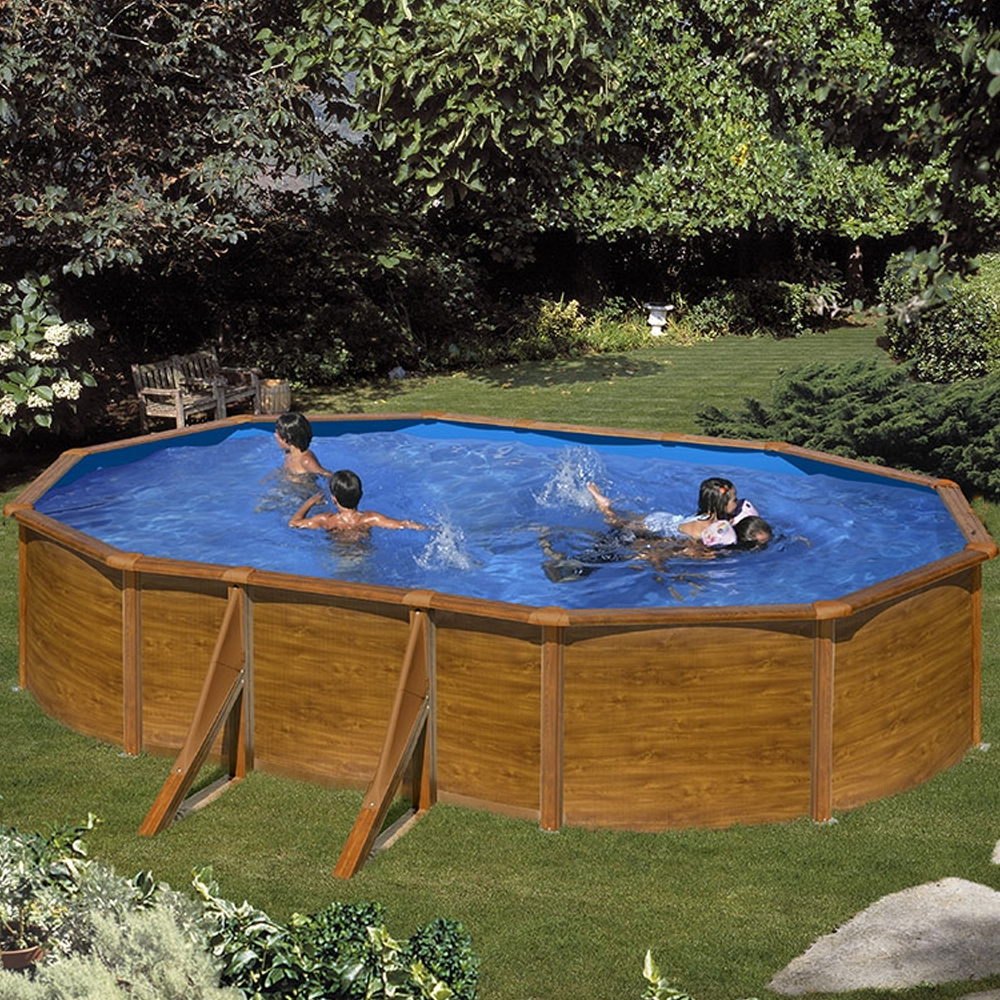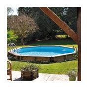 Kit piscine hors-sol Mauritius acier aspect bois ovale - 610 x 375 x H132 cm